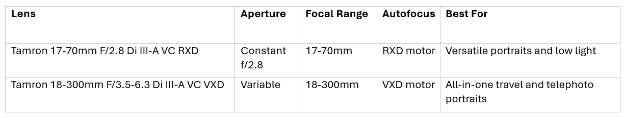 Los zooms para retratos de Tamron ofrecen a los fotógrafos una cobertura flexible, desde retratos cotidianos hasta compresión teleobjetivo.
