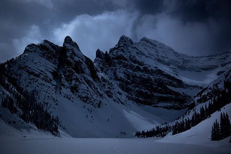 La iluminación en las montañas, y especialmente con tiempo invernal, puede ser decisiva para tus fotos en Banff. "Lo bueno de fotografiar en la nieve cuando hay nubes es que, obviamente, tienes una capa de nubes que puede servir como un gran parasol", explica Kevin. "Pero cuando no hay nubes, la luz puede ser cegadora, lo que dificulta el contraste y la captura de una imagen decente en pleno día. Por eso, si no se prevé que esté nublado, fotografío más tarde o madrugo. Además, me encanta la tranquilidad de las primeras horas de la mañana: a menudo me levantaba cuando todo el mundo dormía y salía solo a la nieve".