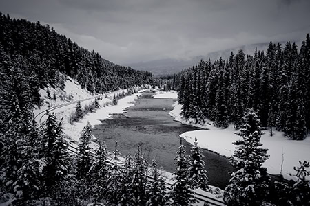 Para dos fotos en blanco y negro que capturó al salir del lago Louise, Kevin se alegró de tener su 16-300. "Es perfecto, como estaba haciendo en estas dos imágenes, porque es ligero, versátil y nítido. "Es perfecto para hacer senderismo, como estaba haciendo en estas dos imágenes, porque es ligero, versátil y nítido.