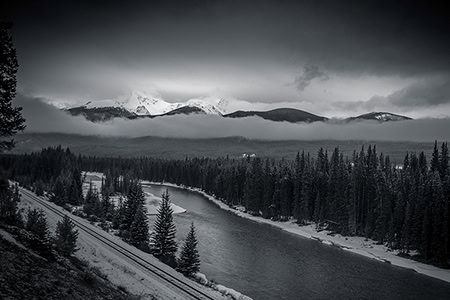 Hay dos rutas alternativas justo al salir de la autopista Transcanadiense que se pueden tomar al dejar Lake Louise y dirigirse hacia Banff propiamente dicho: la autopista 1 o la autopista 1A, también conocida como Bow Valley Parkway. "Recomiendo la 1A por ser más panorámica", dice Kevin. Fue en este camino donde se encontró con la Curva de Morant, un famoso tramo de vía de tren que lleva el nombre del fotógrafo Nicholas Morant, que a mediados del siglo pasado solía tomar fotos de los trenes de la Canadian Pacific Railway que pasaban por la región.