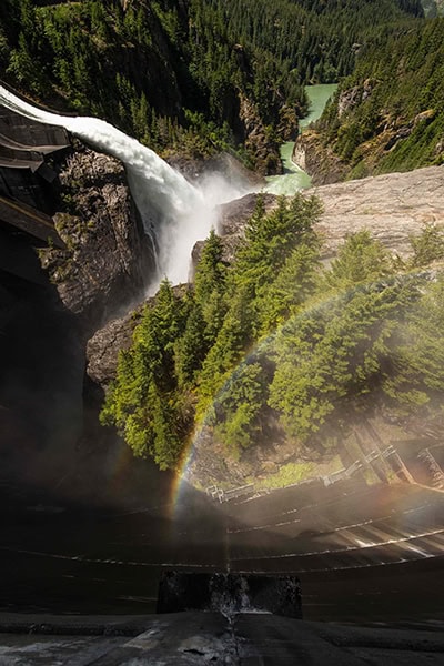 A lo largo del curso superior del río Skagit se encuentra la presa de Diablo, que suministra energía a gran parte de Seattle. Está construida a lo largo de las paredes de granito del Cañón Diablo. Los constructores querían construir un espectáculo para que los lugareños lo visitaran y que les conectara con el aire libre, así que intentaron preservar todo lo posible del paisaje natural en la presa. En lugar de crear una enorme monstruosidad de hormigón, le dieron el aspecto de una cascada natural. Le da un aspecto de otro mundo, sobre todo cuando se puede estar encima y mirar por encima.