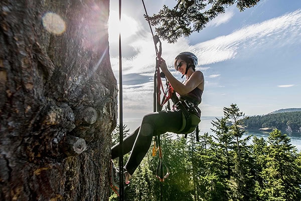 Una de las cosas que se pueden hacer en el Cascade Loop es una excursión por las copas de los árboles. Pagas a una empresa para que te suba con un arnés y el personal te guía por un abeto Douglas de unos 300 o 400 años.