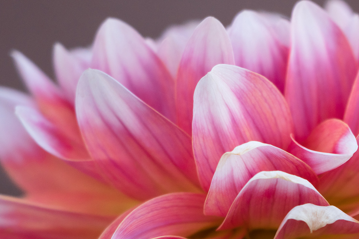 Experimenta con composiciones poco intuitivas y no tengas miedo de mezclarlas. Por ejemplo, no hay nada malo en las composiciones centradas, pero si es lo único que haces, tu portafolio empezará a parecer estático. En el caso de los pétalos rosas que llenan el encuadre de la imagen que se muestra aquí, probé muchos puntos focales diferentes, hasta que finalmente me decidí por esa esquina, donde aparecen más detalles.
