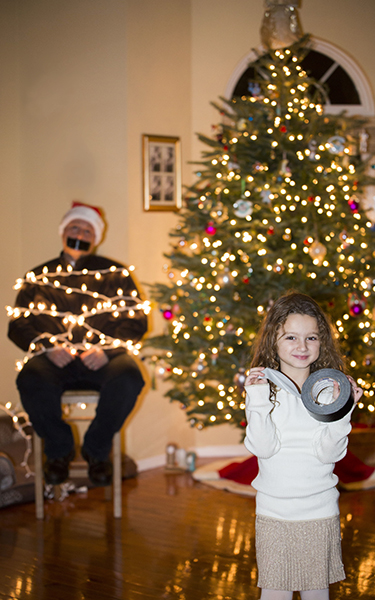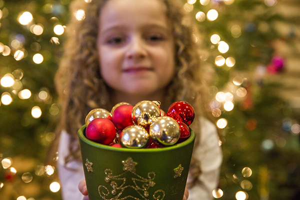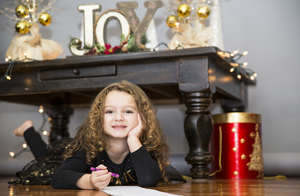 5- Controla tu iluminación. ¿Con flash o sin flash? Tú decides. Las luces navideñas aportan una gran belleza a las fotos y el uso de la luz ambiental puede dar un toque especial a tus imágenes. Pero, a veces, un poco de flash de relleno puede hacer que tu hijo destaque y, al mismo tiempo, mantener las preciosas luces navideñas del fondo.