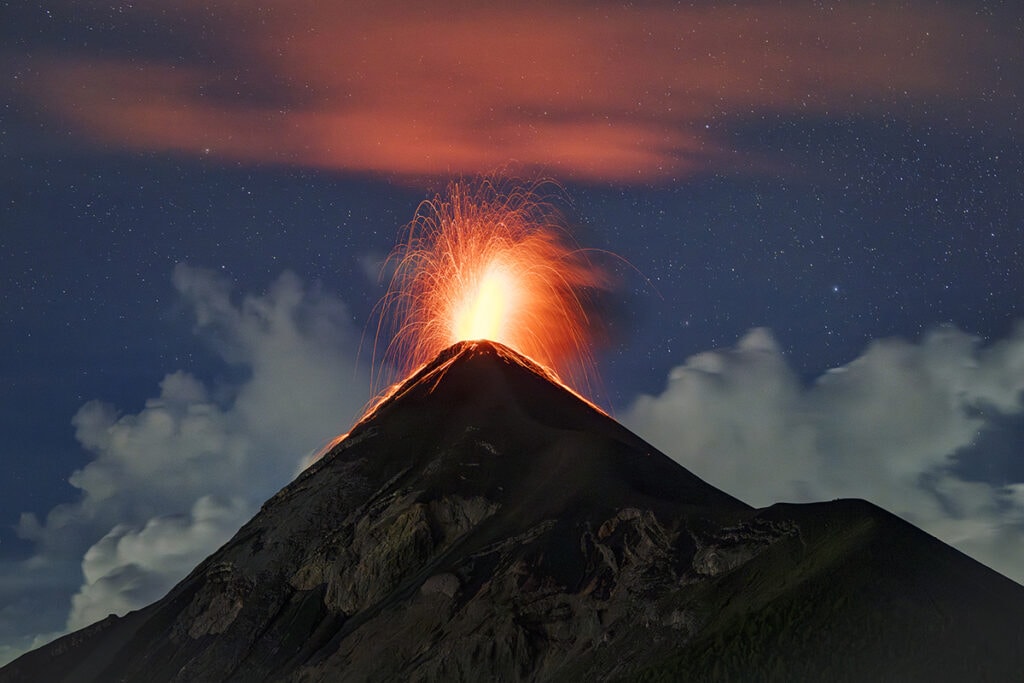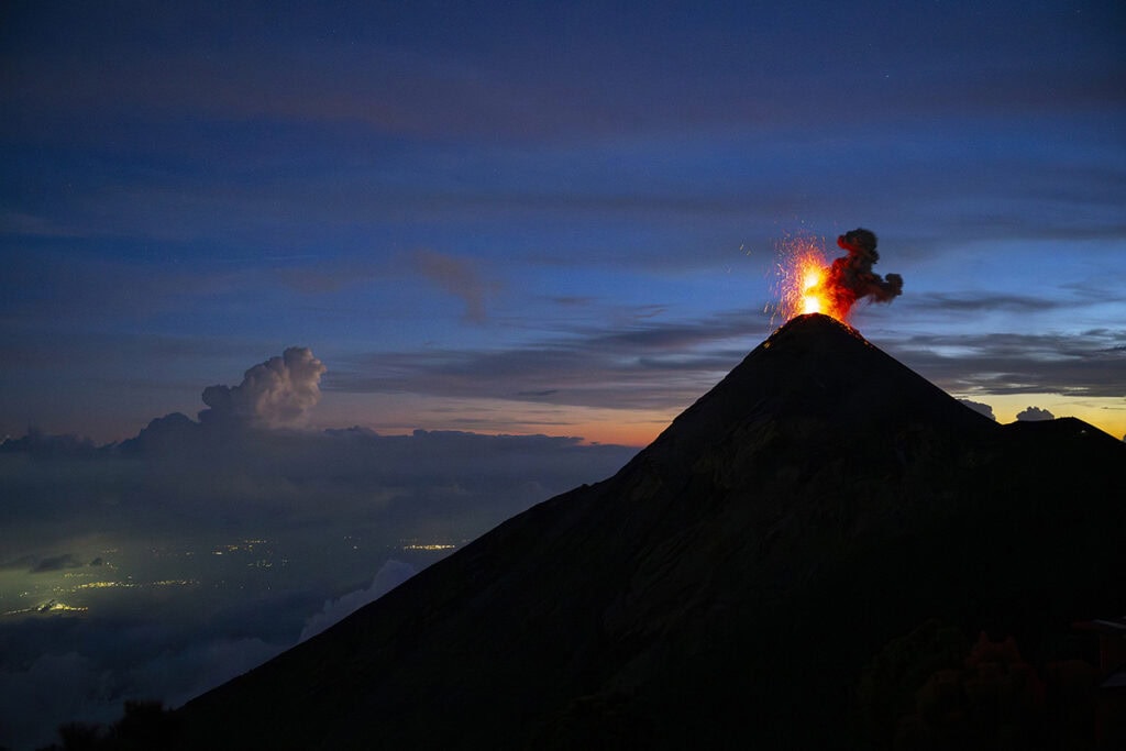 A las afueras de la ciudad guatemalteca de Antigua se alza un trío de estratovolcanes: Acatenango, Volcán de Agua, y Volcán de Fuego, uno de los más activos del país centroamericano. En octubre, André Costantini y Ken Hubbard se aventuraron en la región para presenciar algunas de las erupciones locales, columnas de humo y flujos de lava. "Un conductor nos llevó a la montaña inactiva de Acatenango en una camioneta Nissan Frontier, un viaje de dos horas que nos depositó a unos 45 minutos a pie del lugar donde nos instalamos para pasar la noche y hacer nuestras fotos", cuenta Ken.