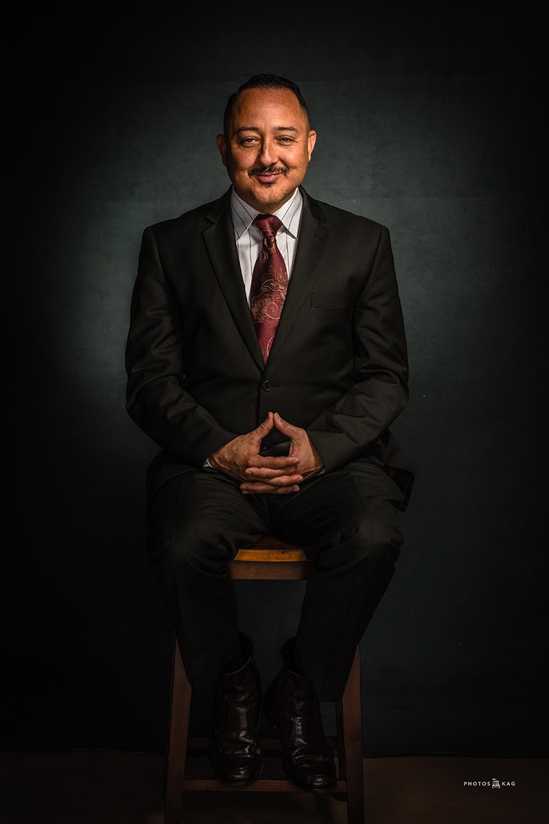 A lo largo de su carrera fotográfica, Kevin siempre ha disfrutado experimentando con la iluminación para evocar el estado de ánimo adecuado en cada imagen, y este proyecto no fue diferente. "Como se trataba de sujetos masculinos, hice mucho más hincapié en las sombras de lo que normalmente haría con sujetos femeninos", dice. "En muchos de los retratos, opté por un aspecto serio y taciturno, lo cual es curioso, porque todos estos hombres tienen una personalidad muy cálida. Sacamos ese lado de ellos más en los retratos ambientales".