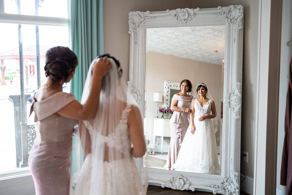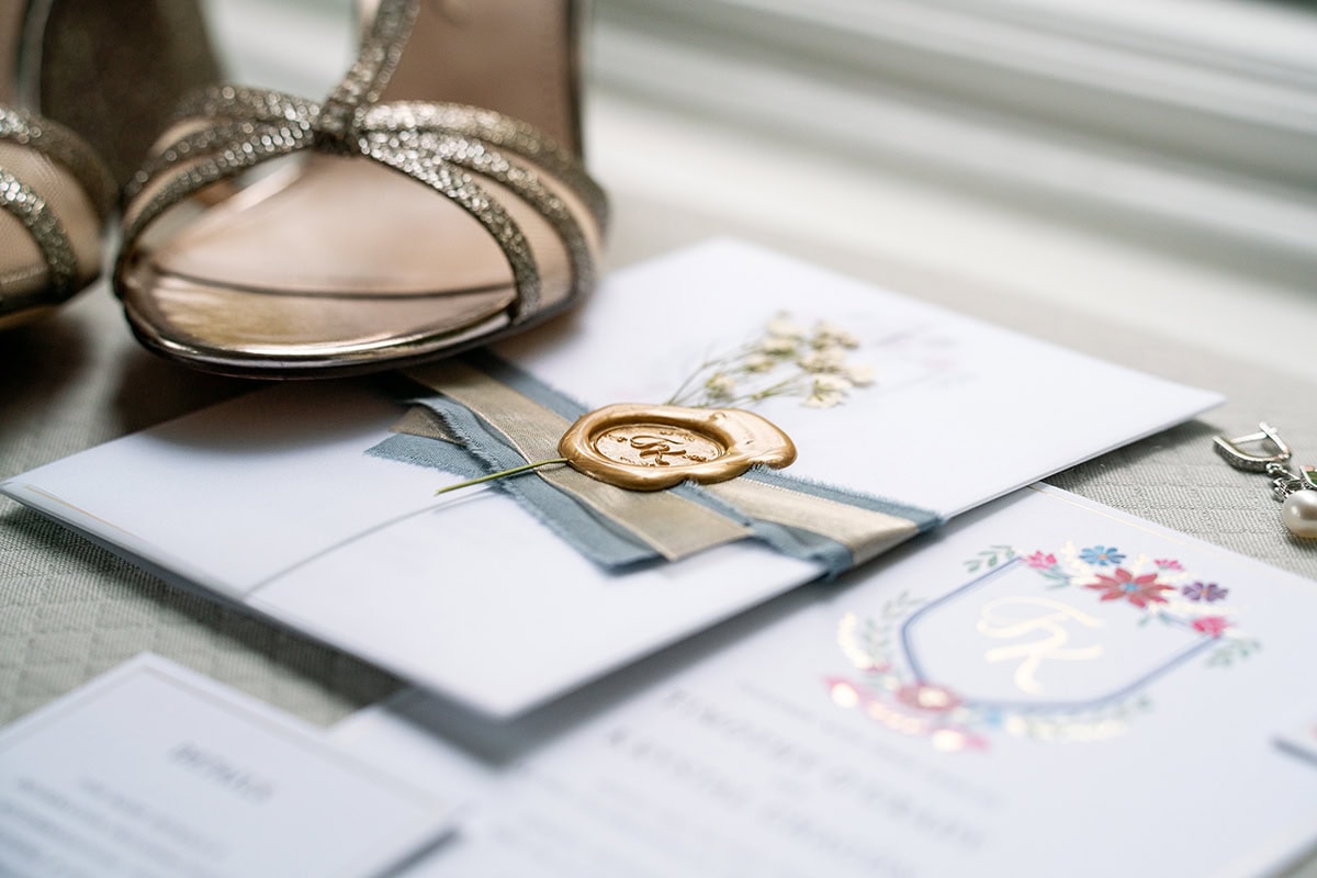 Situar la escena en lugares especiales y añadir esas fotos de detalle ayudan a contar una historia más completa del gran día. "Por ejemplo, si estoy fotografiando una boda en un destino, suelo intentar mostrar algo de ese destino para completar la selección", dice. "Busco una arquitectura única o, por ejemplo, las calles adoquinadas por las que es conocida una ciudad, y las incorporo a las fotos. Ayuda a la pareja a rememorar mejor ese día cuando miran su álbum de boda años después. Y, por supuesto, siempre es agradable ver una foto del vestido de la novia, o de la invitación de boda".