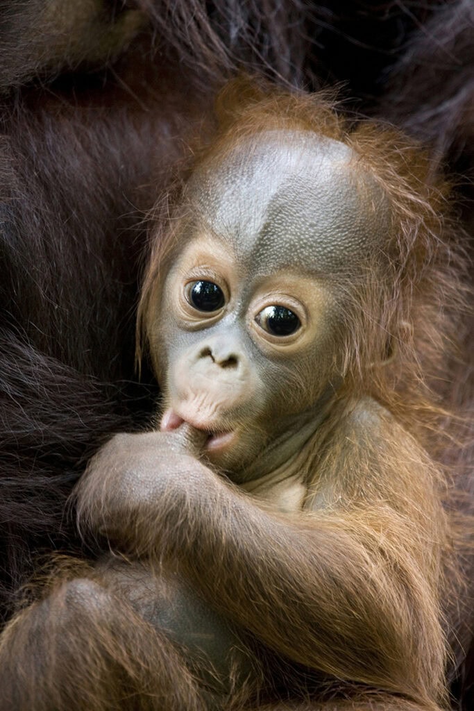 Esta imagen de un bebé orangután chupándose el dedo fue fotografiada bajo una copa de árbol muy oscura. Formaba parte de una colonia de orangutanes en libertad del zoo de Singapur. Tuve que forzar mucho el objetivo y la cámara para fotografiarlo en la penumbra. En ese momento, ni siquiera me di cuenta de que el bebé se estaba chupando el dedo.