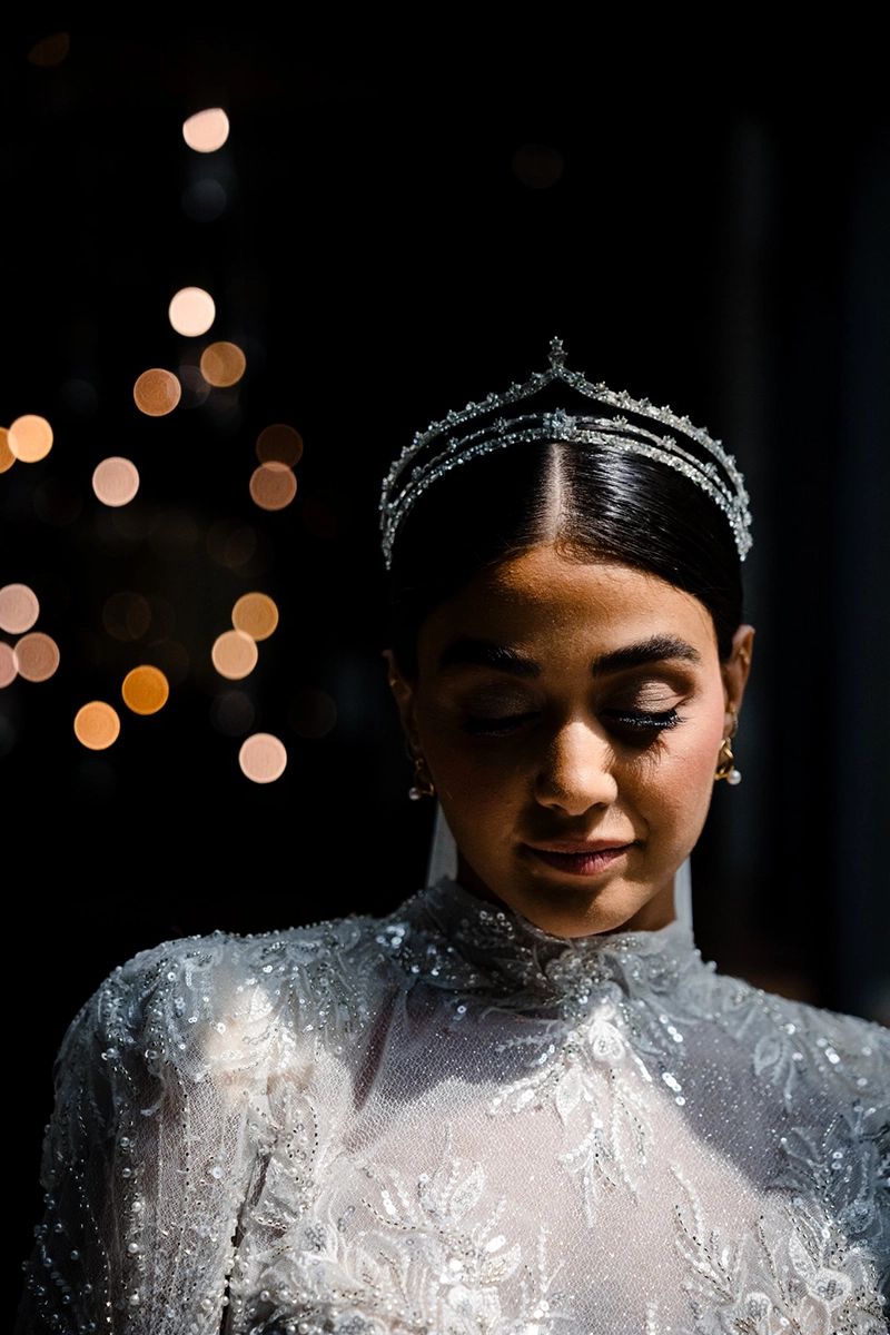 Dans mon travail, je m'appuie sur la séparation de la lumière pour sculpter le sujet en le séparant de l'arrière-plan ou du premier plan, créant ainsi une hiérarchie visuelle et guidant le regard du spectateur avec intention. Le jour d'un mariage, j'utilise rarement un posemètre, mais grâce à la lumière naturelle et aux capteurs modernes des appareils photo, l'évaluation du contraste devient intuitive. Je commence par identifier le point le plus lumineux de la scène, généralement le visage ou la robe de la mariée, puis j'expose pour cette zone claire. Ensuite, je passe aux zones d'ombre pour évaluer la plage. Je préfère une différence de plage dynamique de 2 à 3 diaphragmes, ce qui préserve les détails des zones claires tout en conservant une latitude suffisante dans les zones d'ombre pour une récupération subtile en post-production.
