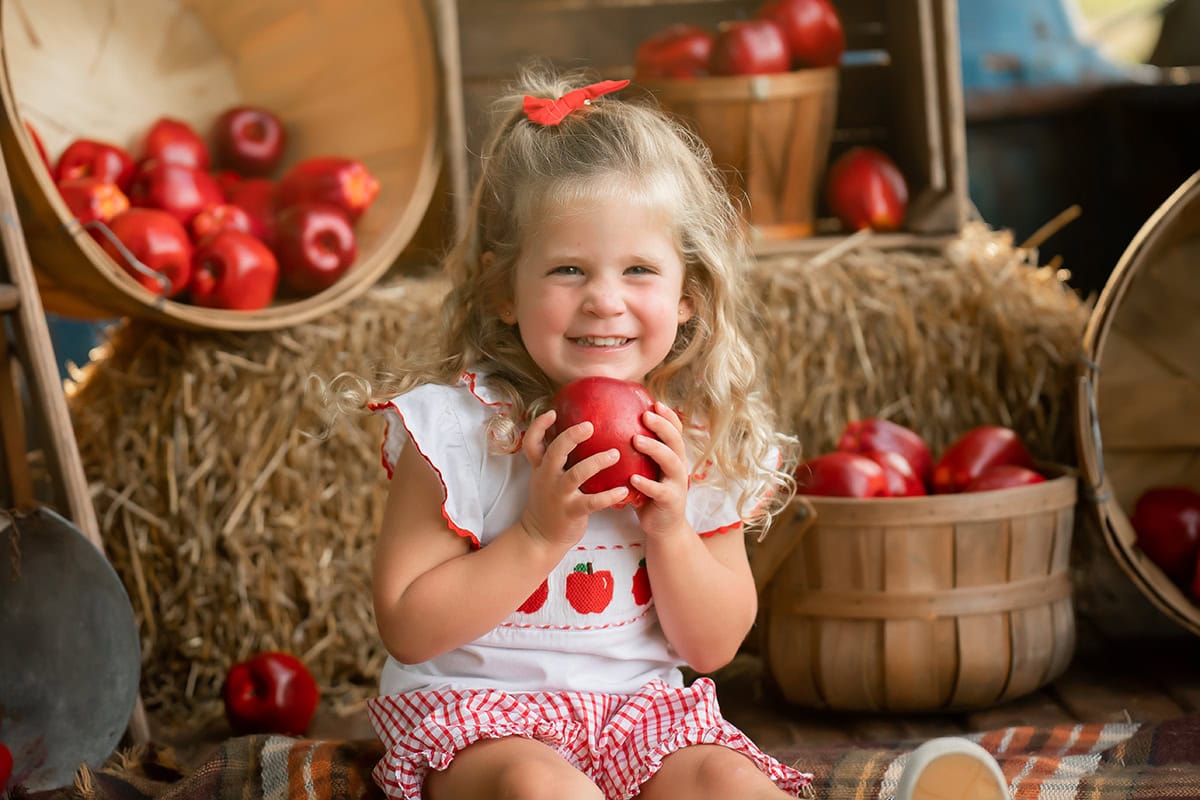 Alors que nous nous débarrassons du sable de nos sacs de plage et que nous entrons dans l'automne, les parents se préparent à faire des portraits avec des séances photos sur le thème de l'automne. Marcie Reif s'est récemment rendue dans une ferme près de chez elle, à Atlanta, pour immortaliser l'effervescence saisonnière, avec ses propres enfants et amis comme sujets prêts à l'emploi. "La ferme vous permet de louer une camionnette pour les photos, à raison de 30 minutes par séance", explique-t-elle. "Ils ont stylisé les pommes, les paniers et les autres accessoires pour moi. Tout ce que j'avais à faire, c'était de me concentrer sur la prise de photos dans ce cadre bucolique".