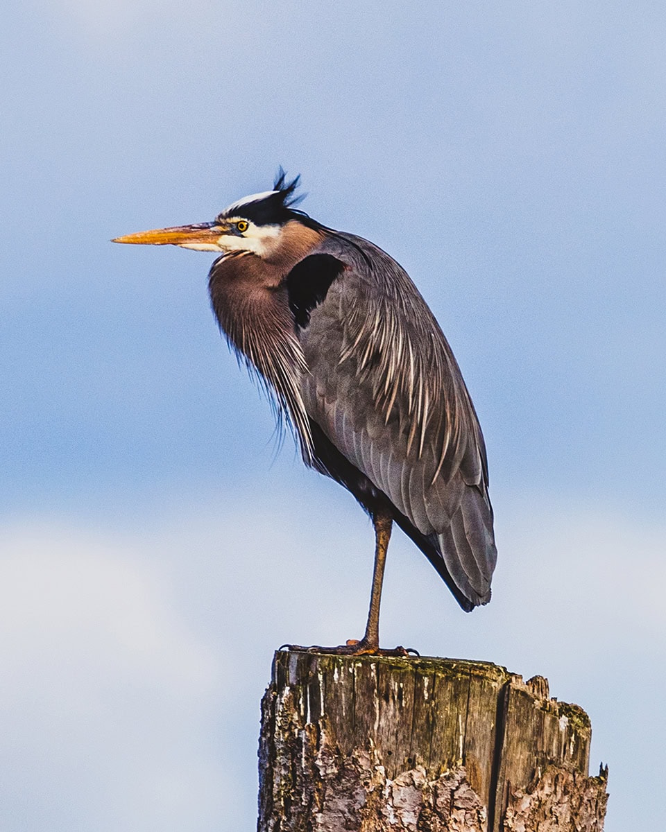 C'est pourquoi le 150-600 mm est si important. Le héron que vous voyez ici était probablement à une distance de 75 pieds, mais grâce à la portée de cet objectif et à sa netteté, j'ai pu saisir une grande partie des détails de l'oiseau. Idem pour le lapin et les renards.
