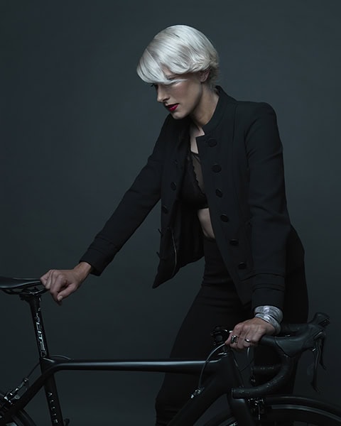 Ce qui était certain, c'est que nous allions photographier de nombreux changements et looks. Un look vintage classique, deux looks mode sophistiqués, une photo hybride entre le cycliste et la mode, deux looks qui révélaient la personne intérieure de Scotti, et bien sûr, deux looks avec Scotti et son vélo. Elle est également arrivée avec deux magnifiques cadres de vélo en fibre de carbone offerts par son sponsor professionnel. J'ai pensé que nous pourrions nous amuser avec celui-ci et en faire une photo plus conceptuelle. Elle a accepté.