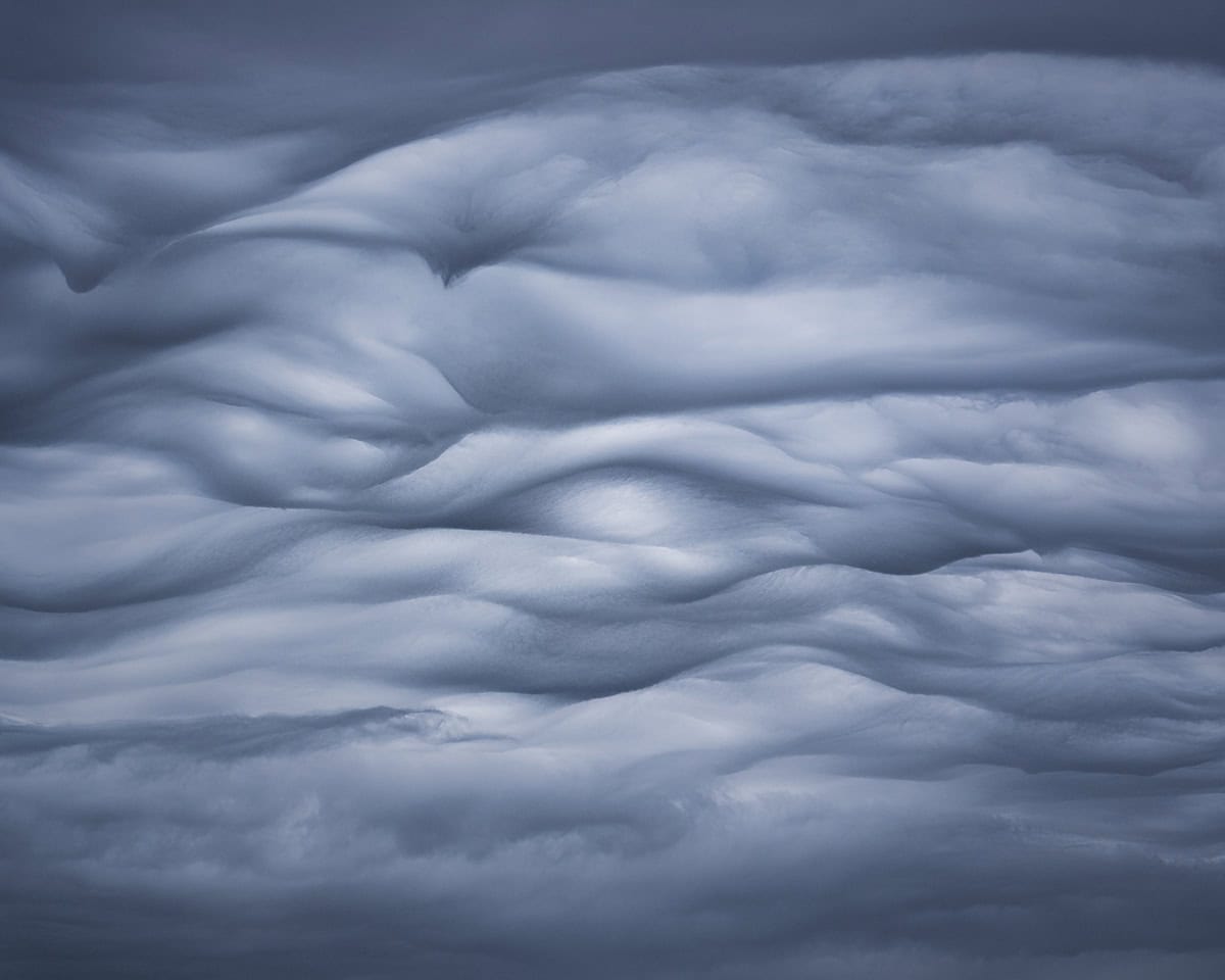 Cela signifie que vous devez être spontané et ouvert à l'idée de capturer quelque chose d'autre que votre objectif initial. Souvent, je finis par "voir" des choses cachées dans des endroits inattendus. Par exemple, sur la photo de la formation rocheuse orange avec les courbes en S, j'ai l'impression qu'il s'agit d'un serpent, dont le corps s'enroule autour du cadre. Dans l'image des nuages, j'ai eu l'impression de voir un œil au milieu de la tempête (regardez à droite au centre du cadre).
