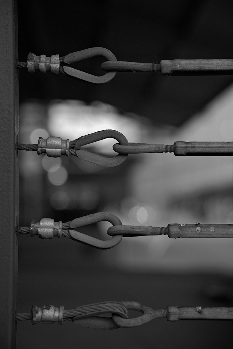 J'étais à la recherche de scènes détaillées à photographier alors que je me promenais dans Nashville, lorsque je me suis rendu compte du nombre de choses que l'on regarde à travers plutôt que de les regarder. Il se trouve que je regardais à travers cette clôture à mailles losangées lorsque cela s'est produit, et après avoir laissé mes yeux s'adapter à cette nouvelle perspective, j'ai réalisé que la clôture elle-même serait un sujet digne d'intérêt. J'ai adoré la combinaison des lignes et le sertissage de chacune de ces boucles. J'ai pris cette photo sous différents angles, mais en fin de compte, c'est la prise de vue directe qui m'a le plus plu.