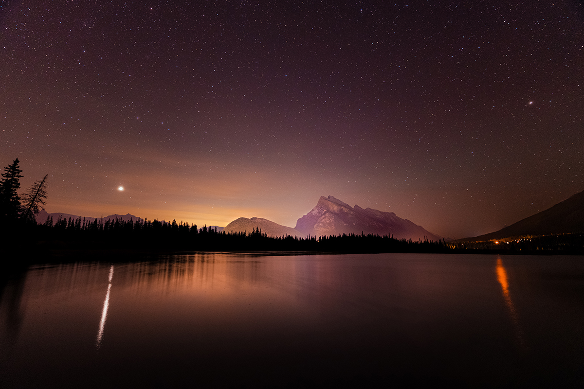 I’d been itching to make an astral photo, and this location seemed perfect—but I was worried I’d encounter too much light leak, complete with purple and orange haze, from the town tucked between Mount Rundle and the tree line. However, that light ended up framing and illuminating my subject. All the stars came out to play, including Polaris on the left. I was super happy with how this photo came out.