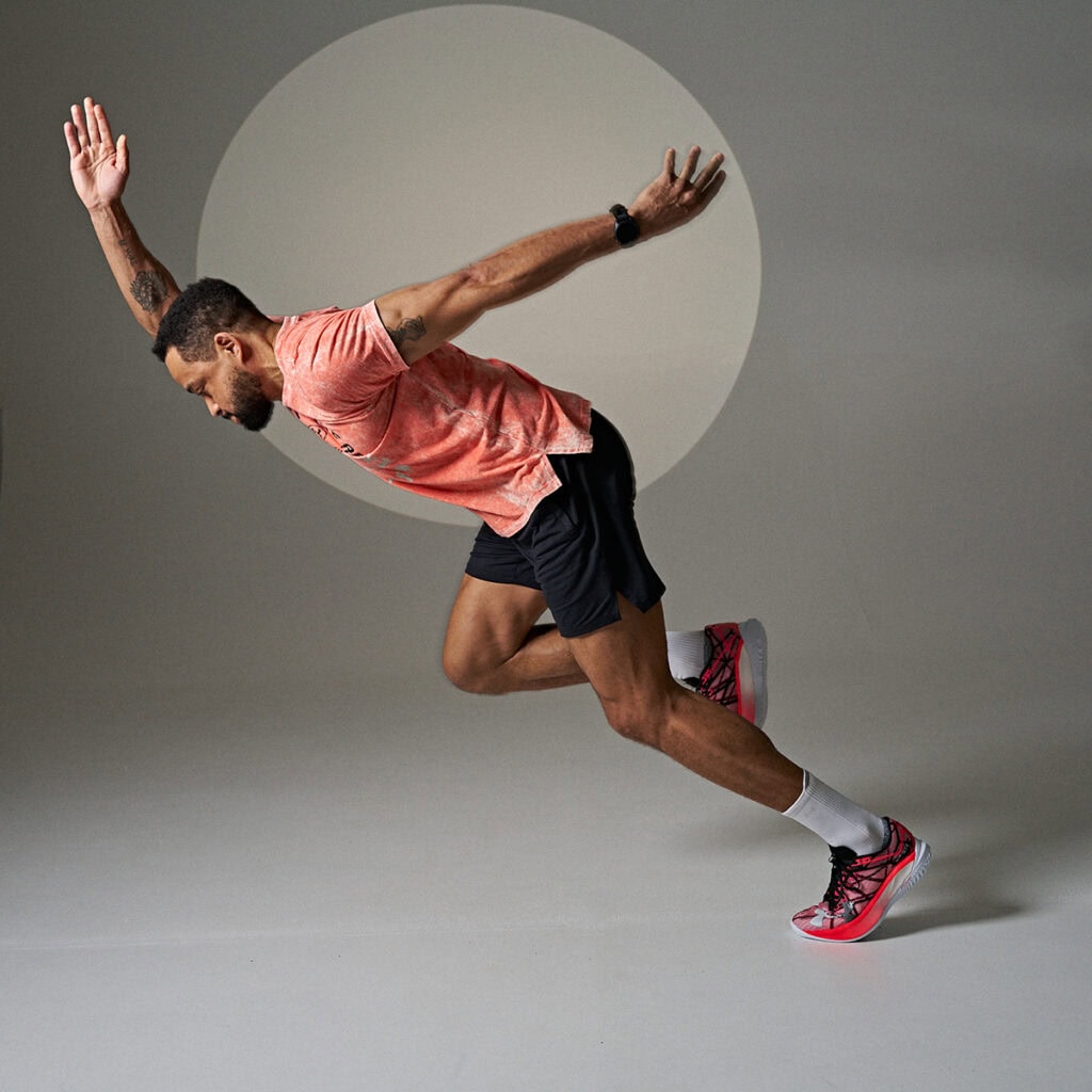 I also shot the other two Under Armour shots you see here with the 35-150mm. To enhance the effect of the athlete simulating a sprinting start, I placed a constant light behind him to create depth and added some intentional motion blur. Capturing that peak moment was only possible because of how quickly the 35-150mm lens was able to focus.
