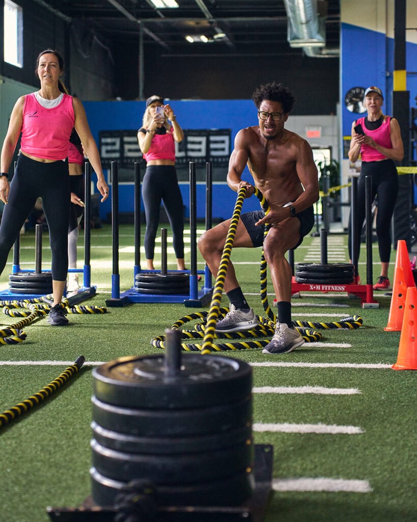 To assist in these supercharged fitness photography sessions, Yvens relies on what he calls his “Tamron trinity”: the Tamron 70-180mm F/2.8 Di III VC VXD G2 telephoto zoom, the 28-75mm F/2.8 Di III VXD G2 standard zoom, and the 35-150mm F/2-2.8 Di III VXD all-in-one zoom, all for his Sony mirrorless camera system. “This trio covers the entire range of a production,” he says. “I isolate the best features of each lens to pick the right tool for every job.”