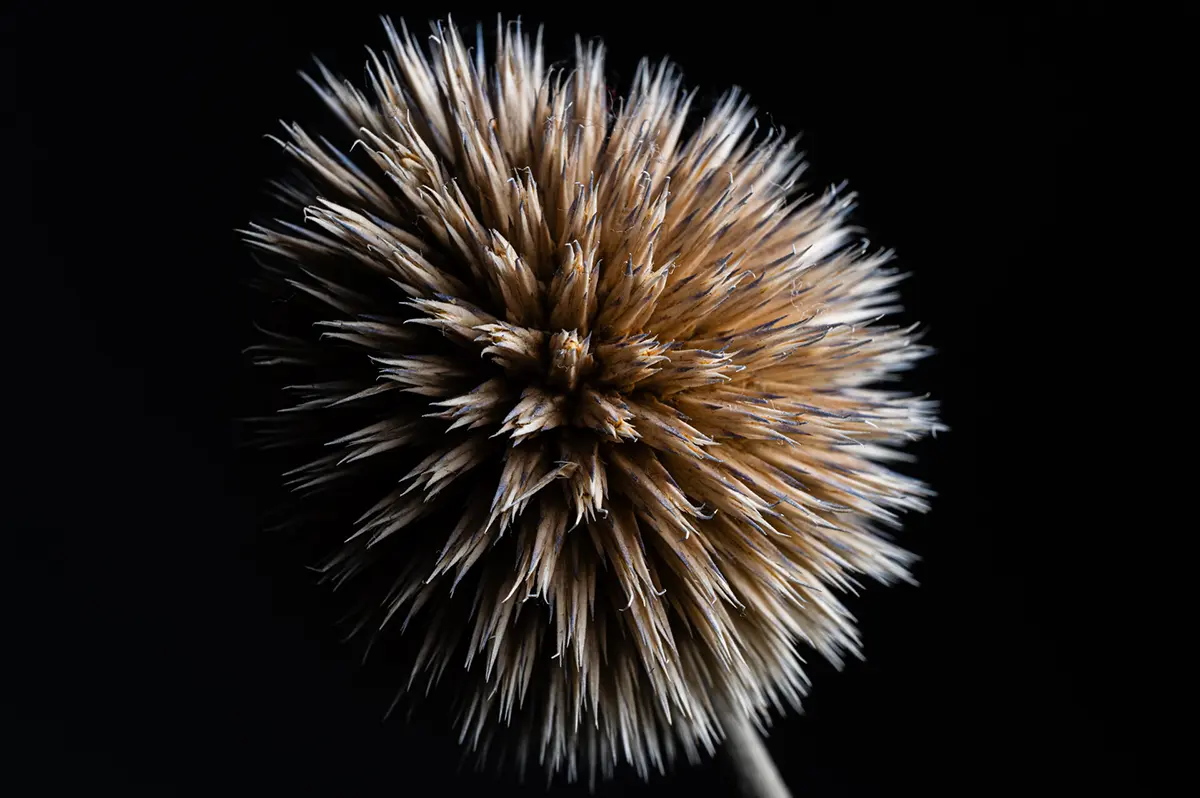 For that spiky-looking flower, I arranged my setup so that the light skimmed across the flower’s surface, creating a glow while letting the light fall off into shadow as the viewer’s eye moves to the left. For the purple flower, I tried to emphasize the depth and shape of its inner petals, the “pit” that draws the viewer in. My goal was to create dimension without overwhelming the delicate features of the flowers.