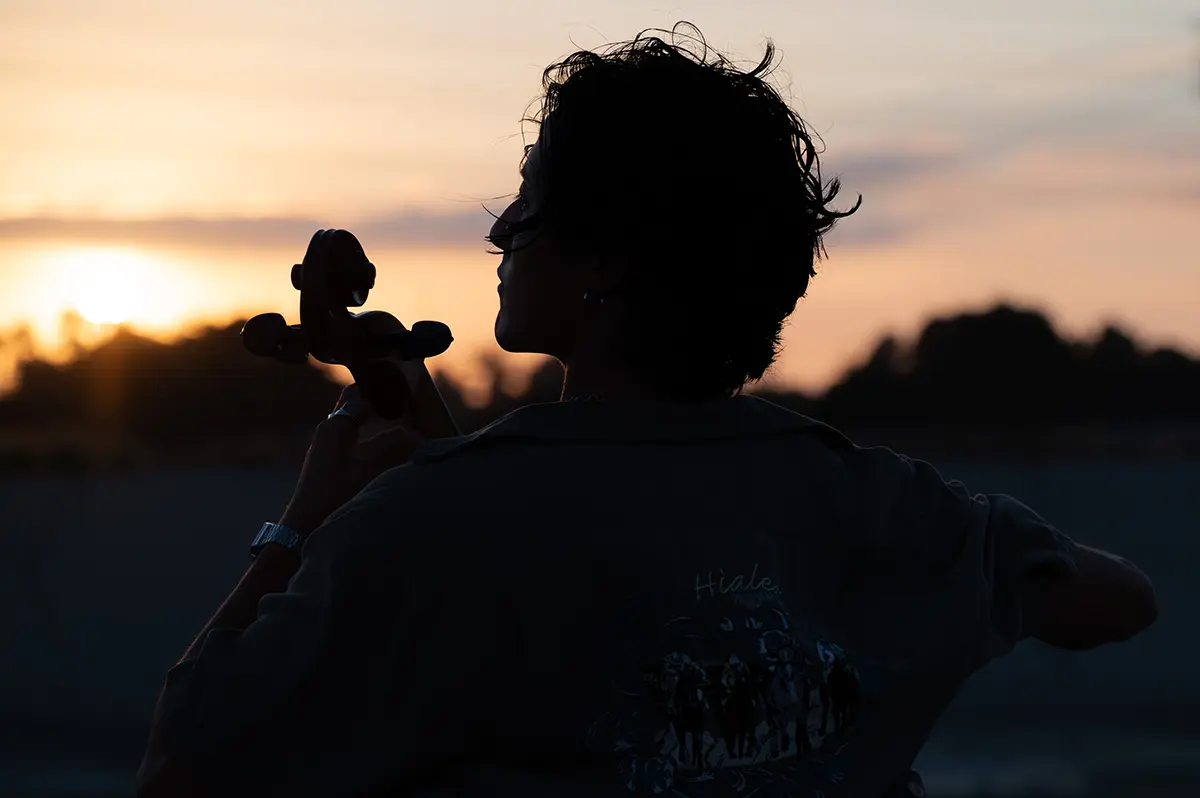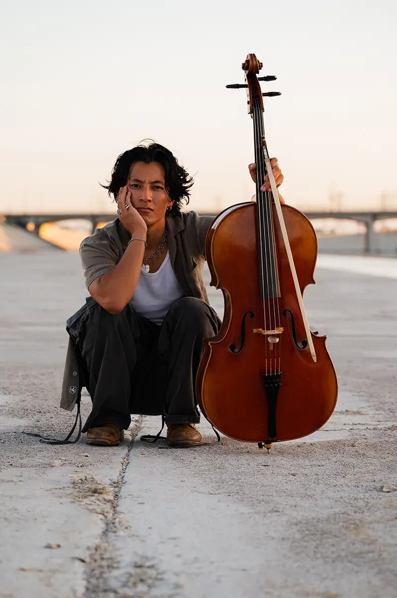 For this particular shoot, I photographed my brother, who’s a cellist, near the Los Angeles River at sunset. Around golden hour, the light reflects off the concrete in a really warm way. I thought it would make a perfect setting for a relaxed, natural portrait.