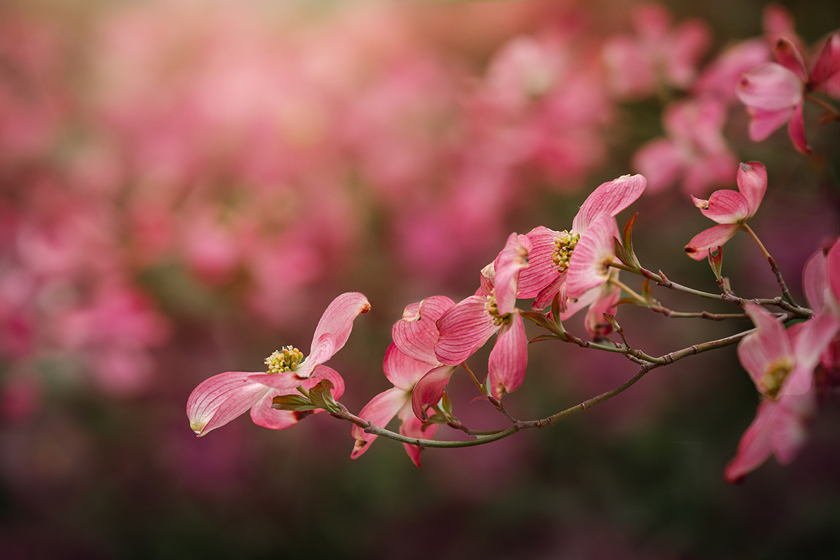 I don’t want distracting elements that will draw attention from my subject and story. The photo here of the pink flowers was challenging. The garden had many of these flowering trees, but most of them were too high for me to capture. I found one branch low enough to capture, but there was a waterfall in the background creating a distracting white blob behind the flowers I wanted in focus. I used editing to clone out the white spots. The same with the purple tulips you see here. The background had a fence blurred out at the top of the frame, so I used a light overlay to camouflage the fence.