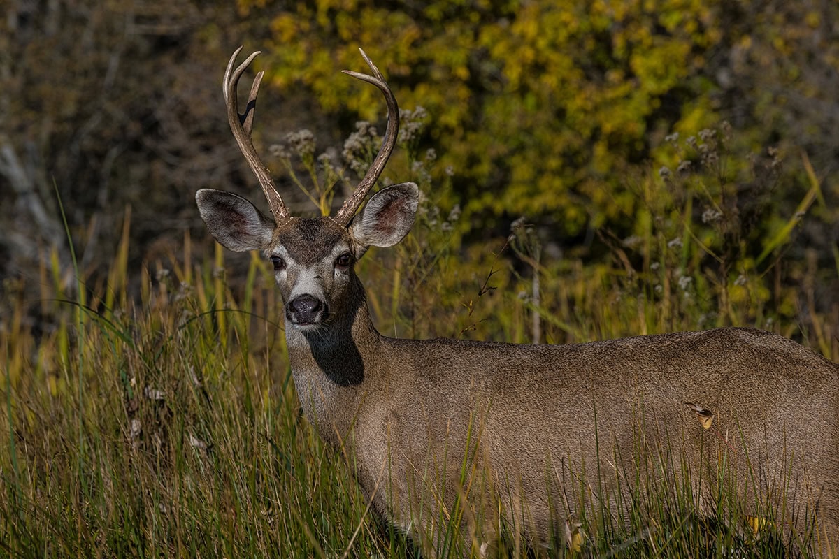 This black-tailed deer, which I spotted from about 20 feet away, was close to the shore. It was walking away from me, so I whistled to get its attention. As soon as it turned to look at me, I took the photo. I wanted to make sure I captured most of its body but still included a good amount of the environment, which is why I zoomed in to 234mm instead of all the way to 300mm. This also goes back to what I mentioned earlier about how eye contact is key to creating a compelling animal portrait.