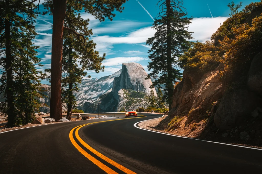 This photo of the Mustang coming around the bend near Half Dome is one of my favorites. I’d seen Half Dome from this angle before, but when I arrived, I felt a standard shot wouldn’t be as compelling. After scouting the scene, I realized that using the double yellow lines in the road as leading lines would add depth and interest. Still, I felt something was missing. That’s when I decided to wait for a car to pass through. Many vehicles came and went, but when I saw this Mustang approaching, I knew it was the perfect subject to complete the shot.