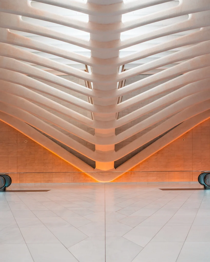At the World Trade Center Transportation Hub in New York City, I was about to walk down the stairs when I noticed that the centerline on the floor led directly to where the ceiling’s skeletal structure met the ground, creating perfect symmetry. I quickly realized this could be a great architectural/abstract shot. Luckily, I had my camera with me and was able to capture the moment.