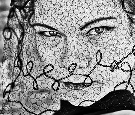 After he finished the full-length shots he was there to do, Michael put the hat on her, brought her outside, and placed her in front of a blank wall, where he captured her in all-natural light with his Tamron SP 70-200mm VC lens. “The combination of that veil and the patterns and her type of face and the elegance of it all—it just worked,” he says. “In the end, when she wanted a picture of herself to take home, this was the one she chose, not one of the ones I was originally assigned to do.”