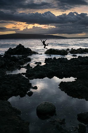 On cloudy days, Michael will often head down to a beach near his Hawaii studio to see if he can capture dramatic sky photos, and it was here where he captured a mysterious man who danced in the sand. “This guy just comes down to this beach with his headphones on and dances,” Michael explains. “He’s so elegant that I figured he had to be a professional dancer of some sort. At any rate, I started taking his picture because I was so fascinated with his form.”