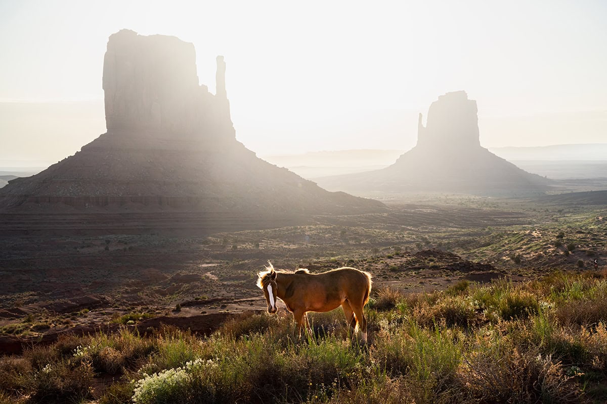 Stay spontaneous and be alert for unexpected moments—the landscape almost always delivers. When I was in Monument Valley photographing the Mitten buttes, a group of wild horses wandered over, and one of the them positioned itself perfectly in between two of the Mittens. It was as serendipitous a situation as it could get, and because I had the versatile 50-400mm, I was able to zoom in and out until I was able to frame the lone horse just how I wanted it in the scene.