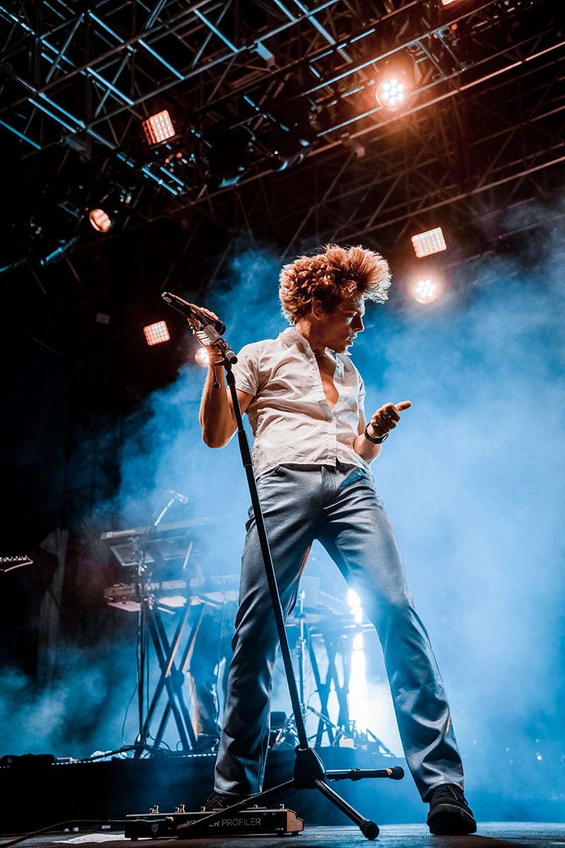 This is essential for capturing the essence of their performance. When preparing for a show, I always previsualize how I’ll shoot, edit, and present the images; different artists have distinct styles and energies that can influence your approach to live show photography. For instance, I typically shoot a lot of closeups of singer-songwriter Hozier, while with singer Olivia Rodrigo, I like to incorporate some lens flare, because it resonates with her performance style and personality.