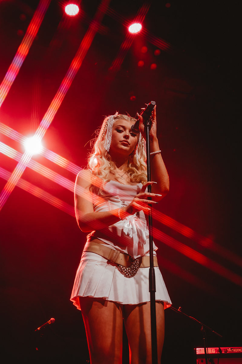 Singer Loren Gray hired me to photograph her while opening for another act at a smaller venue in New York City. In those types of venues, it can be challenging to capture a shot that’s unique from other photographers’ images, because you’re all in the pit together. In those cases, I’ll add my own spin by bringing out the lighting behind the performer, like what I mentioned with Olivia Rodrigo. I used a Prism FX filter on my 28-200mm F2.8 in this case to enhance the light flare, all without overwhelming my subject. The lens ensured that my image stayed sharp and soft at the same time.