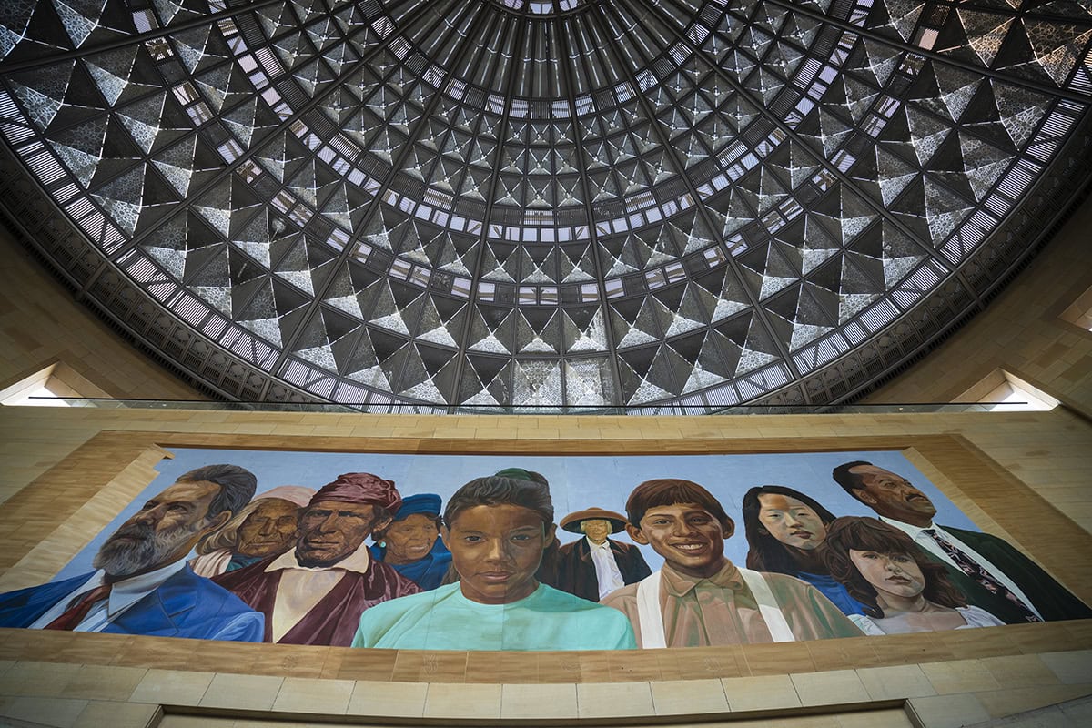 It’s very easy to get caught in the eye-level zone, but it’s important to scope out all your surroundings from a variety of perspectives when seeking out subjects. When I spotted this colorful mural inside the station, I asked myself: How could I place the mural in a composition that gives me something beyond the obvious? I thought it worked so well with the dome above it—the roundness of the dome somehow brings the eye directly back to that person in the center of the mural.