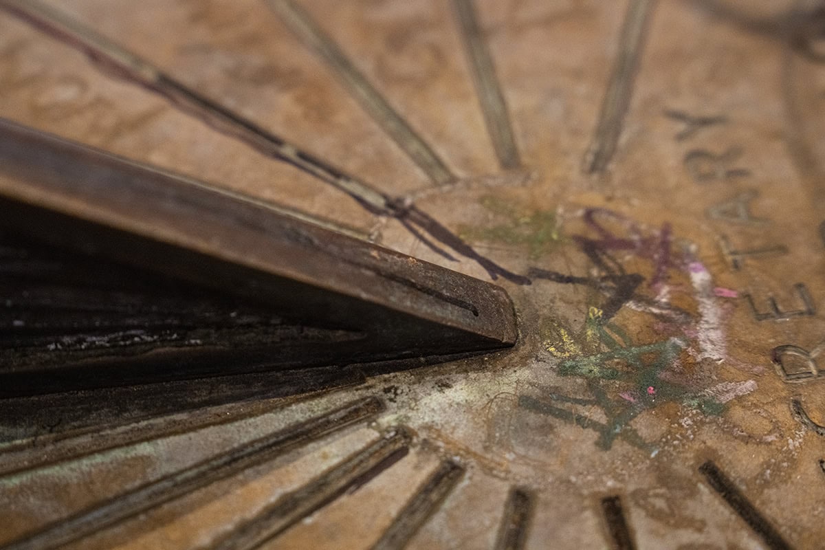 Don’t forget those detail shots. In street photography, your choice of lens can significantly impact your ability to capture such images. With a minimum object distance (MOD) of 7.5 inches and maximum magnification ratio of 1:4.6 at the wide end, and an MOD of 11.8 inches and maximum magnification ratio of 1:3.8 at the 50mm end, the Tamron 17-50mm was the ideal lens for me to use when taking pictures of this sundial. It’s not that big of an object, and I was zoomed in very tight. You can see all of the intricate details present on the sundial, including a bit of graffiti.