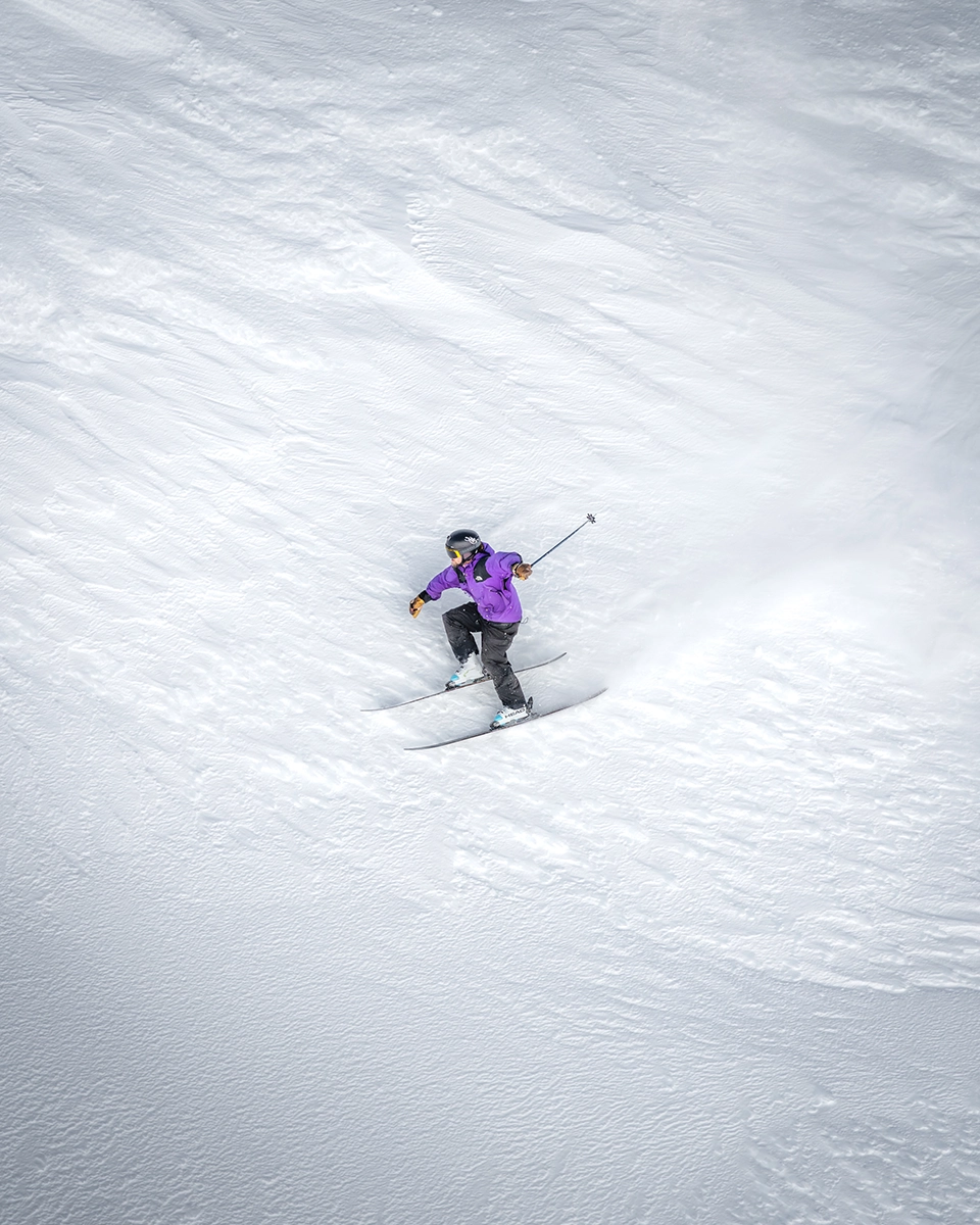 Snow can naturally act as negative space, and I like to lean into that for certain shots. A clean, white background simplifies the frame and lets the subject really stand out, especially when they’re wearing bold colors. That white space also helps guide the viewer’s eye directly to the action without distractions.