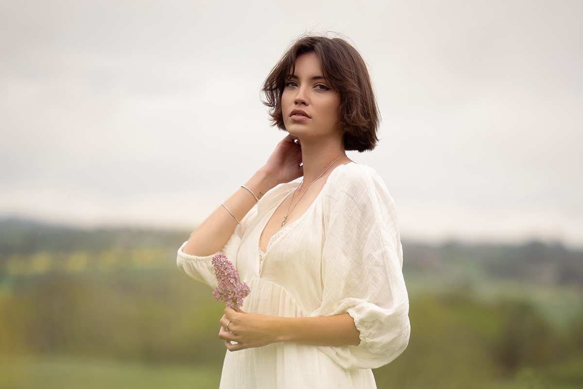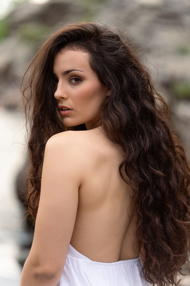 Os ângulos da câmera têm a capacidade de influenciar a percepção das características masculinas ou femininas de um modelo. Em cerca de 90% das vezes, prefiro abaixar um pouco a câmera ao fotografar um modelo masculino, o que destaca a parte superior do peito e acentua seu lado masculino. Por outro lado, ao fotografar uma modelo feminina, gosto de fotografar de um ângulo mais alto para mostrar sua postura, seu rosto e seu olhar.
