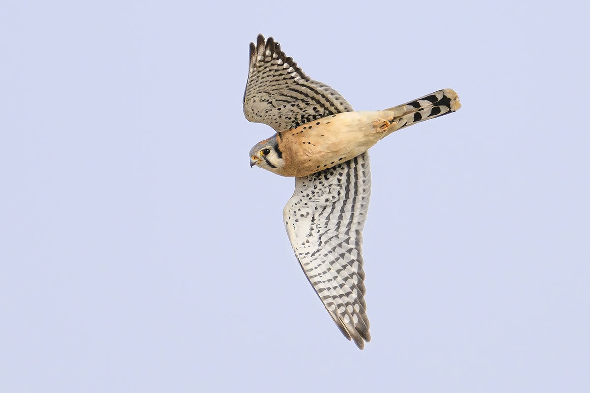 Com a detecção de olho de pássaro, a lente Tamron 150-500 foca rapidamente na Nikon Z9. Para pássaros em voo, configure o limitador de foco para ignorar objetos próximos para ajudar o sistema de foco automático a trabalhar ainda mais rápido.