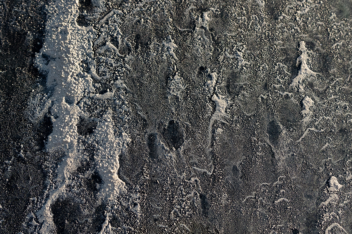 Eu tinha acabado de voltar de fotografar cavalos selvagens no deserto do noroeste de Utah quando vi essa poeira no vidro traseiro do meu veículo. Fazia algum tempo que eu não lavava o carro e a poeira estava bem espessa. Adorei os padrões que ela criou no vidro - gosto de pensar nisso como uma "paisagem de poeira" topográfica. Aproximando-me com minha 50-400, parecia que estava imitando fotos aéreas de uma paisagem desértica. Ela ostentava as mesmas linhas e texturas e pode fazer o observador pensar: "O que exatamente estou vendo aqui?"