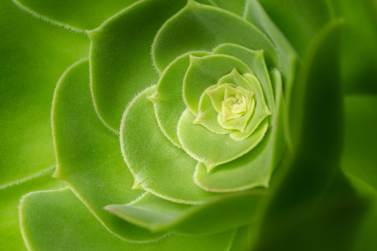 Tirei esta foto em Monterey, Califórnia, onde as suculentas crescem soltas. Adoro o padrão concêntrico, com as camadas saindo do meio da planta. Eu queria chegar bem perto, pois não queria capturar a planta inteira. A 50-400 me ajudou a isolar apenas a parte que eu queria e a me concentrar em todos os detalhes finos. Também gosto da profundidade de campo que consigo obter com essa lente. Posso identificar exatamente onde quero focar e permitir que todo o resto se transforme em um bokeh agradável e suave.
