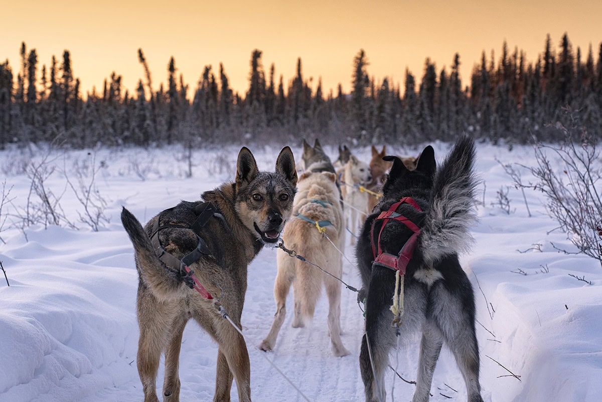 A abertura F/2.8 da 28-75 também foi fundamental. "Quando se está tão ao norte, o sol nasce apenas duas horas por dia", diz Ken. "A abertura máxima de F/2.8 da 28-75 me ajudou muito com essa luz suave e baixa, especialmente quando eu estava fotografando os cães de trenó. Ao aumentar um pouco o ISO e poder abrir até F/2.8, consegui atingir as velocidades de obturador necessárias para congelar a ação."