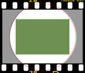O campo verde na imagem a seguir (imagem 01) mostra o tamanho de um sensor APS-C em comparação com um filme fotográfico convencional de 35 mm (os sensores de formato completo têm o mesmo tamanho de 35 mm). O círculo branco marca o círculo de imagem das lentes Tamron Di II.
