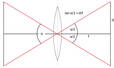 Exemplo: Se a distância focal for igual à diagonal do formato, então tan α = 0,5 e, portanto, o ângulo é de 53°. Essa é uma lente padrão para o respectivo formato.